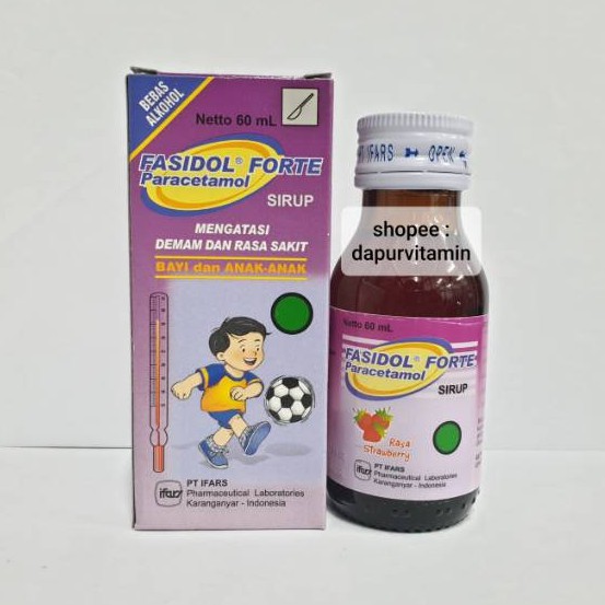 Tersedia dalam bentuk sirup yang didistribusikan oleh Ifars. FASIDOL 160MG5ML FORTE SYR 60ML digunakan sebagai penurun demam untuk segala usia dan pereda nyeri seperti sakit kepala sakit gigi dan nyeri ringan lainnya. Fasidol Forte adalah obat sediaan tablet yang mengandung parasetamol sehingga efektif untuk meredakan demam yang disertai dengan rasa nyeri di tubuh seperti sakit kepala dan sakit pada persendian tubuh.
