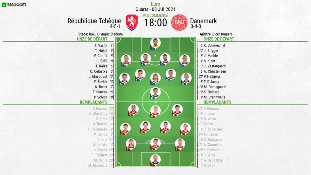 La compo officielle de la République Tchèque. Première demi finale. Opposée à la République tchèque ce samedi en quart de finale le Danemark vit décidément un Euro de football bien particulier.